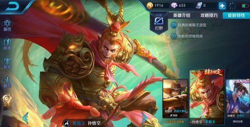 猴王皮肤的特效也是一大亮点。在游戏中,猴王皮肤拥有独特的技能特效,如金色的火焰、炫目的光芒,让人仿佛置身于《西游记》的世界。此外,猴王皮肤还拥有独特的回城动画,让人在游戏过程中感受到无尽的惊喜。